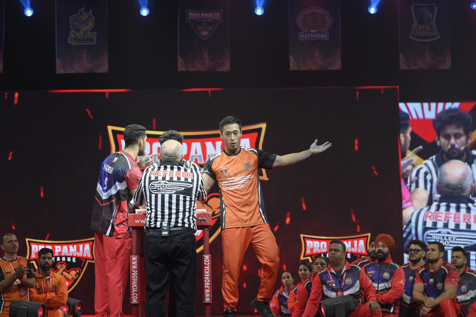 अंडरकार्ड फिक्चर 2 में, एमपी हाथोदास के मोहसिन शेख ने 60 किग्रा+ वर्ग में रोहतक रॉडीज़ के निज़ामुद्दीन को हराकर अपनी ताकत का शानदार प्रदर्शन किया और 2-1 की जीत दर्ज की। इसके बाद 55 किग्रा वर्ग में एमपी हाथोदास के एइरी कमेनलांग शाबोंग ने रोहतक रॉडीज़ की कराबी को 2-0 से हराया, जिससे घरेलू टीम की बढ़त दोगुनी हो गई। पैरा एथलीट वर्ग में, ग्वालियर के मनीष कुमार (एमपी हाथोदास) को रोहतक रॉडीज़ के श्रीनिवास बीवी से 2-0 से हार का सामना करना पड़ा।