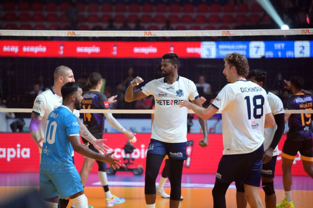 चिराग के आक्रामक खेल ने गोवा के प्रशंसकों में उम्मीद की किरण जगाई। नाथनियल डिकिंसन और अनुभवी जेफरी मेंज़ेल के क्रॉस अटैक से गोवा ने लय पकड़नी शुरू कर दी। लगातार दो सुपर पॉइंट जीतकर कोर्ट पर गोवा का पलड़ा भारी हो गया।